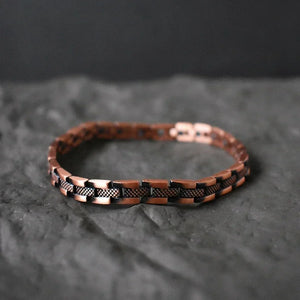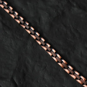 Raw power meets refined detail in theIronFlame Chaincraft—a bracelet forged for the modern warrior. With its burnished copper finish and dark cross-hatched inlays, this piece evokes the glow of smouldering embers and the strength of hand-forged armour. The rugged chain-link design blends flexibility with bold presence, making it a standout accessory for those who carry fire in their style and grit in their soul. Durable, distinct, and undeniably striking.