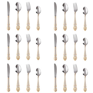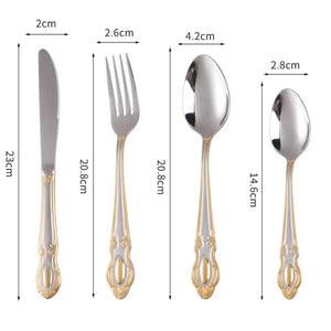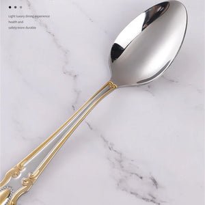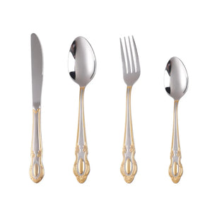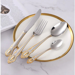 Introducing the Prestige Two-Tone flatware collection, where timeless design meets contemporary craftsmanship. Each piece features a distinctive gold and silver two-tone handle with ornate detailing, providing a luxurious feel and exceptional balance. Made from durable, food-grade stainless steel, this set ensures lasting brilliance and is an essential addition for anyone who values exquisite table settings.